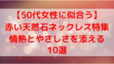連ねた小粒の赤めのうも、透明感のある赤色が肌を明るく見せてくれるので、50代の女性の首元に自然に寄り添う優しい印象に。