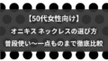 50代の女性にも自然になじみ、普段のシンプルなお洋服にそっと彩りを添えてくれます。